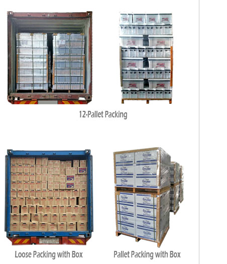 - Loose packing can be arranged (max weight 21000kg per 20ft container)
